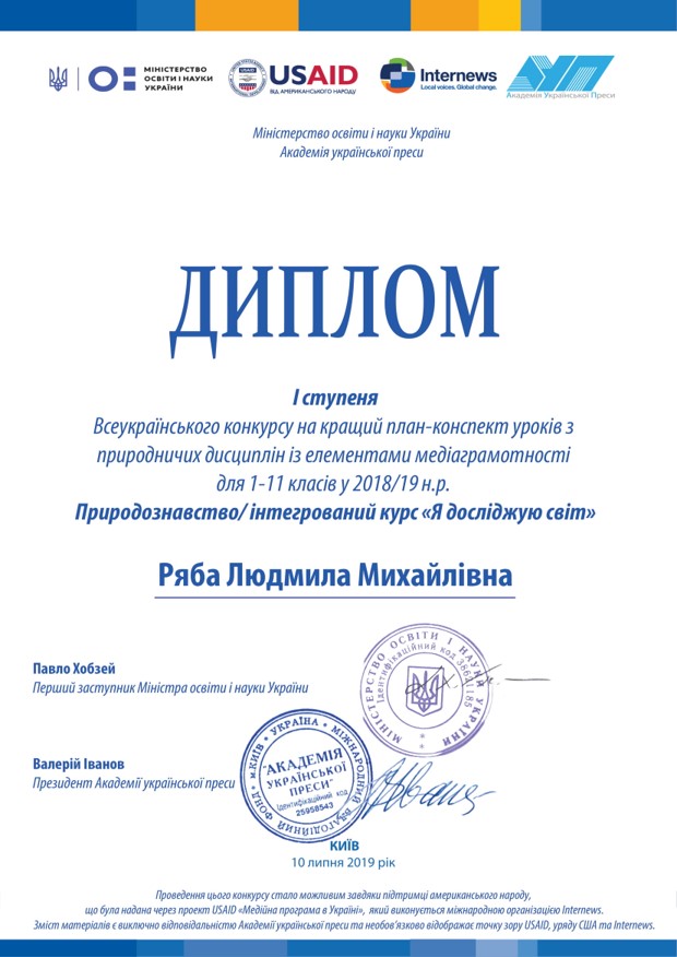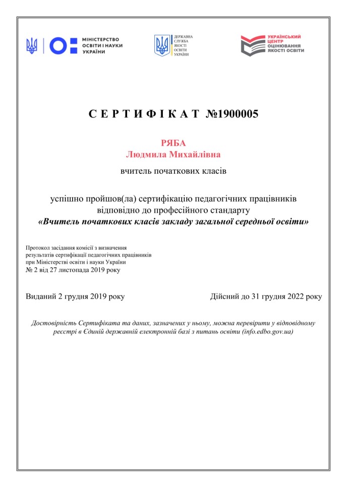 Суб'єкт підвищення кваліфікації: Людмила Ряба